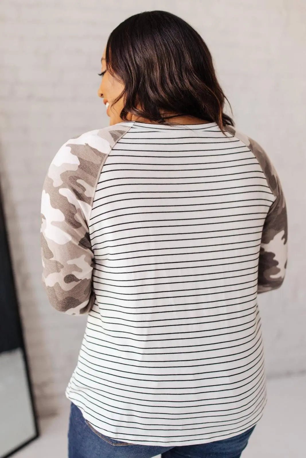 Be the first to review “Camo & Stripes Raglan Top” Cancel reply