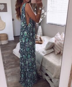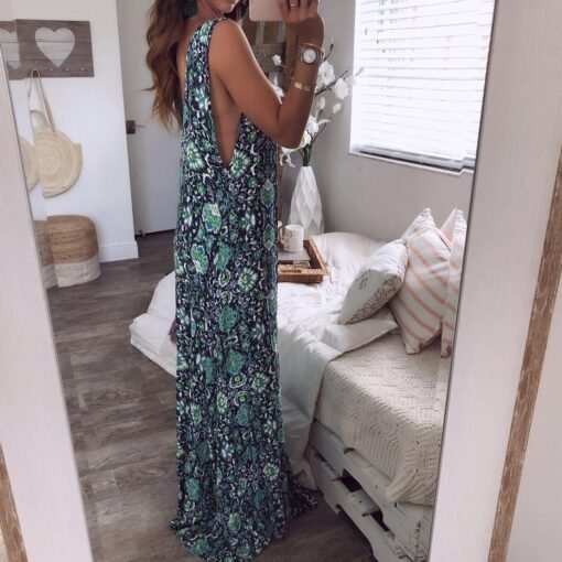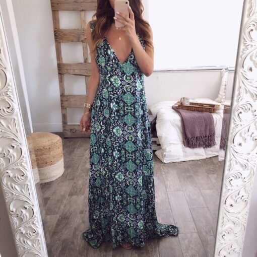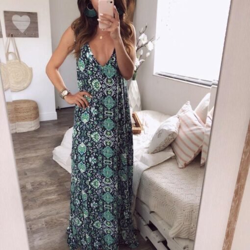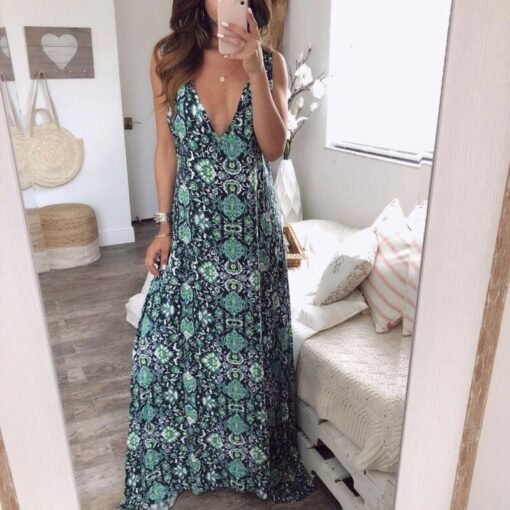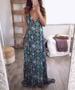 Floral Dress Ladies V neck Summer Beach Holiday Sleeveless Sundress