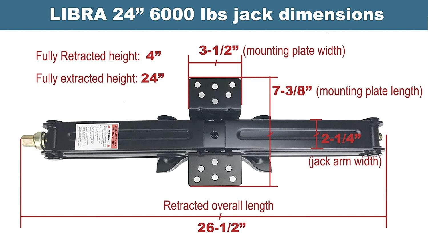 Set 4 Libra 24″ 6000lbs RV Trailer Stabilizer Leveling Scissor Jacks w/ Dual Power Drill sockets & mounting Hardware Set