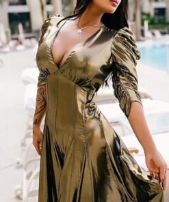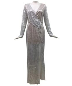 ruched desiged sequined dress women long sleeve party dress elegant split long maxi dresses autumn sequin robe femme