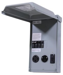 RV Panel with 50 Amp and 30 AMP RV Receptacles and a 20 Amp GFCI Receptacle