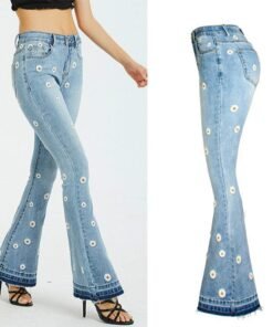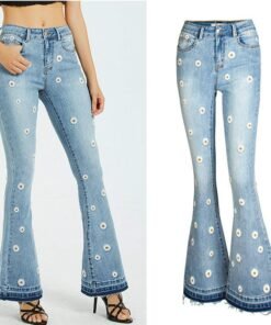 flower embroidered flare denim pants womens vintage women jeans spring autumn jeans