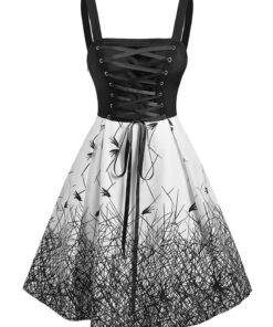 gothic lace up printed dress sling dresses robe femme wrap sundress